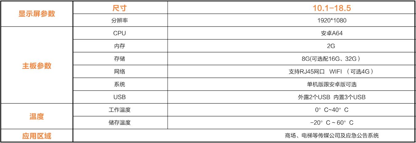 超薄機(jī)身;質(zhì)感拉絲金屬;高清畫(huà)質(zhì);觸摸極速反應(yīng);智能分屏;智能遠(yuǎn)程信息發(fā)布;可定時(shí)開(kāi)關(guān)機(jī);提前設(shè)定節(jié)目源;鋼化玻璃屏幕;可定制專屬LOGO、多種顏色、尺寸可選。