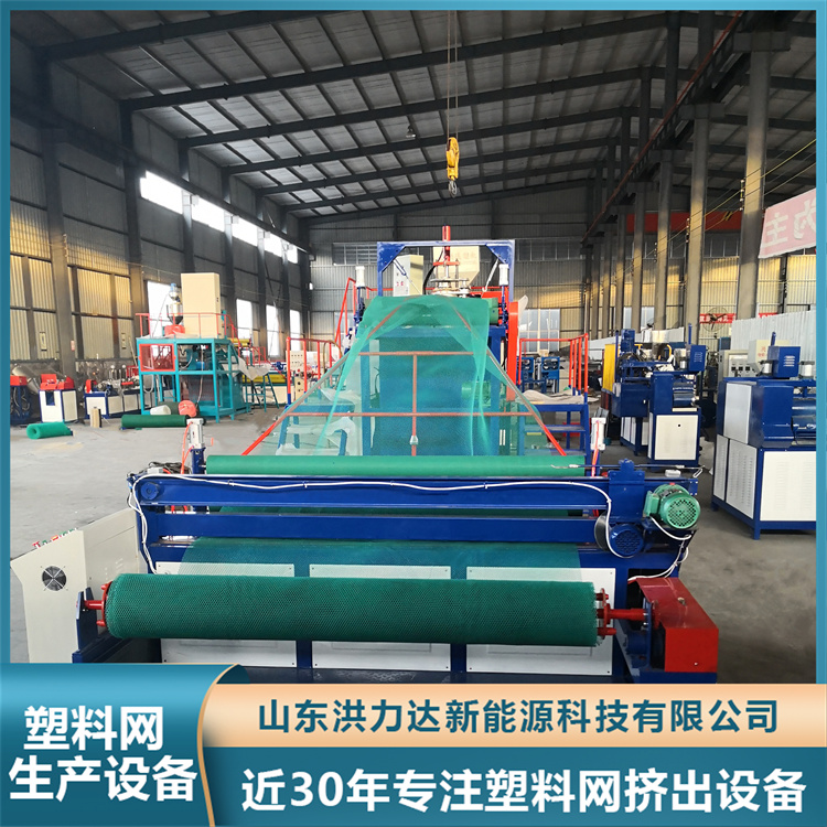 我們常見到的,養雞用的塑料圍網,塑料腳墊網,水產養殖塑料網,樓房窗防盜網外面圍的塑料網都是一種叫塑料平網機設備生產的,該機可以生產多種規格的網,網的顏色也可定制,一機多用,操作也很簡單,洪力達近30年專注于塑料網擠出設備的生產